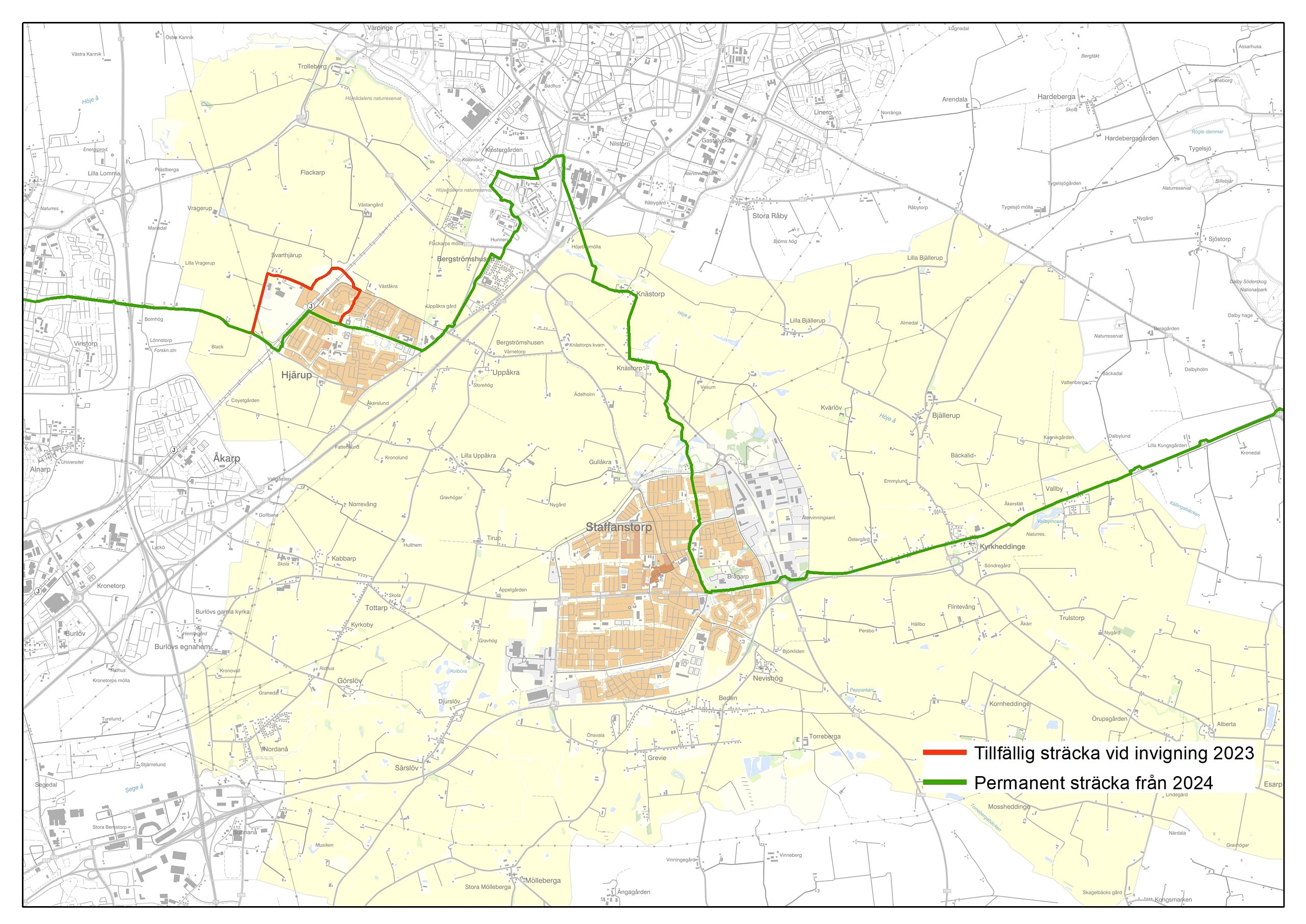 Genom Hjärup kommer leden få en tillfällig sträckning i väntan på att arbetet med 4-spår ska färdigställas. Skyltning och information på hemsidan kommer uppdateras kontinuerligt så att alla cyklister ska hitta sig vidare till nästa besöksmål.